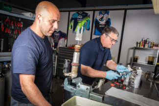 4.42 SUSPENSIONS est une entreprise qui a été crée dans les années 2000 par Éric Chantriaux pour étoffer le savoir-faire de Solution F. La société a été crée dans le but de solutionner les problèmes rencontrés dans la liaison au sol. A la base, ce n’était qu’un département, mais au fil des années, grâce aux compétences accrues et à l’investissement d’Éric, la société est devenue une identité propre. Aujourd’hui, basée dans la zone de Venelles Tech, sur les hauteurs d’Aix-en-Provence, la société dispose d’un local de 250 m2 dédié à la suspension, avec des outils à la pointe. La société génère deux chiffres d’affaire bien distinct, un dans la conception de pièces et de produits, et l’autre dans la préparation pour la compétition. Grâce à plusieurs titres Français et Européens acquis au moyen des heures de travail, la société possède la confiance de nombreuses équipes et pilotes de renommée. L’atelier est ouvert également pour les particuliers de 8h à 12h et de 14h à 17h. Un service d’expédition est mis en place pour les acheminements de colis dans toute l’Europe. Afin de valider le travail, la société dispose d’un camion atelier pour finaliser les tests sur le terrain, indispensable à la mise au point.
